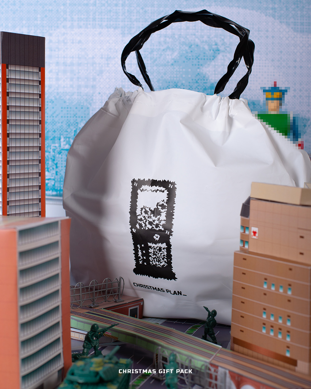 以本次巨蛋襲來視覺延伸, 採用特製的抽繩禮品購物禮袋,印有 CHRISTMAS PLAN 字樣,讓計畫通的你禮物別出心裁。