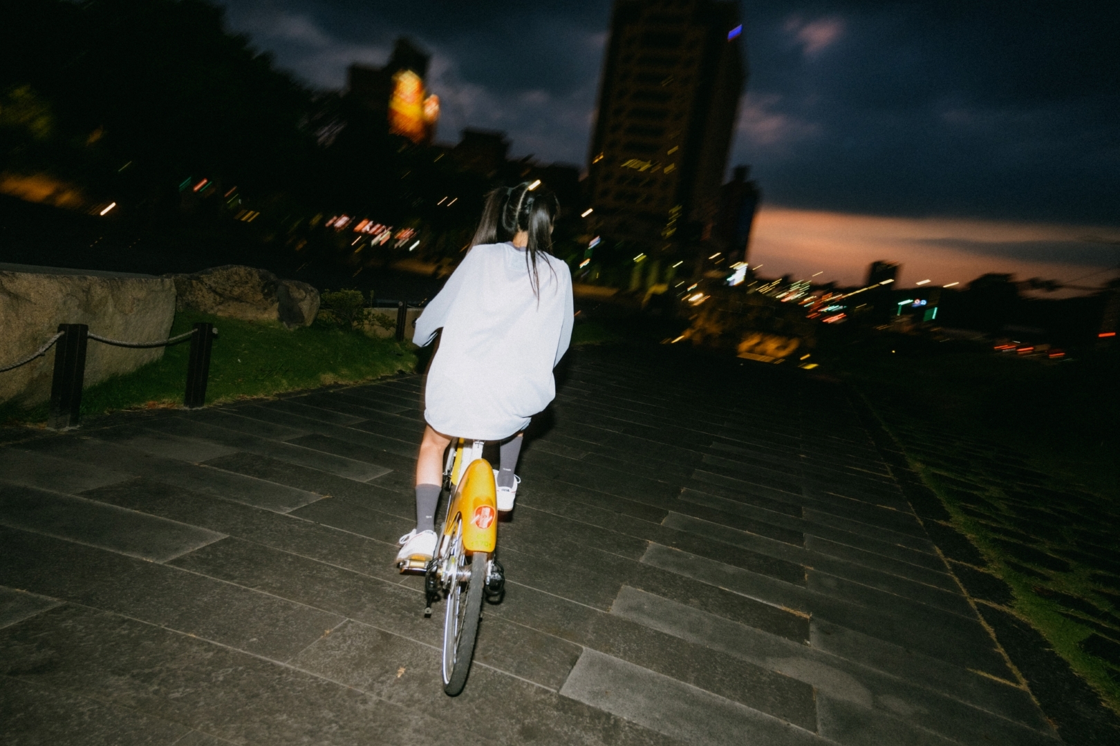 月色底下的一切稍顯陌生,充滿玩心,像是披上一層青春期般的濾鏡,熟悉的道路可以和同伴重新探索、停駐,添上一層輕薄的愉快記憶。