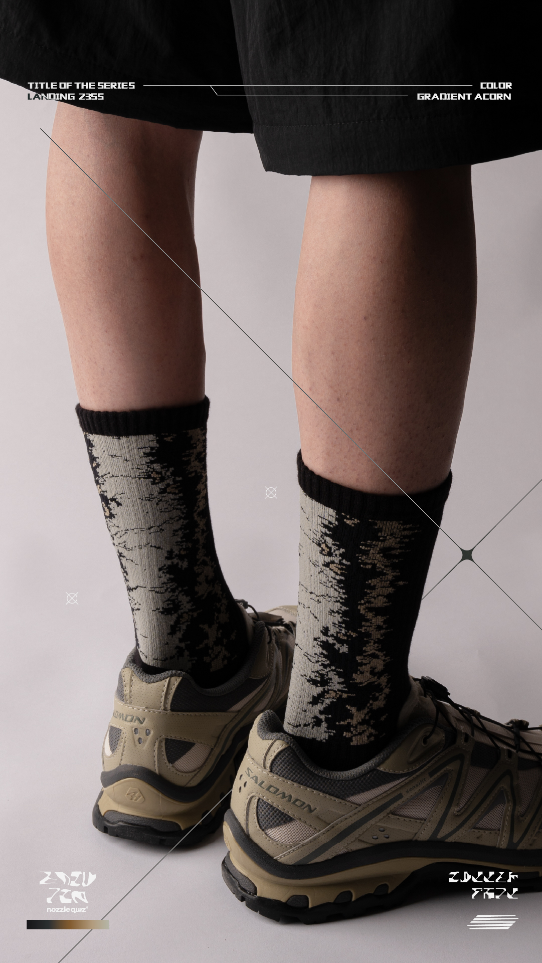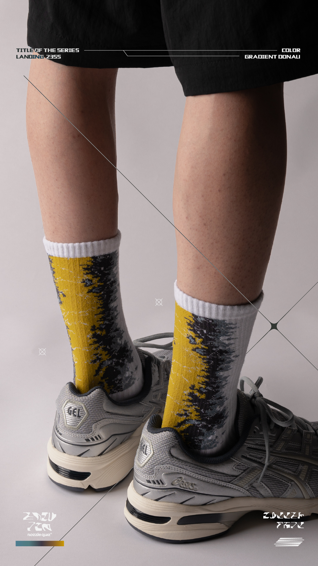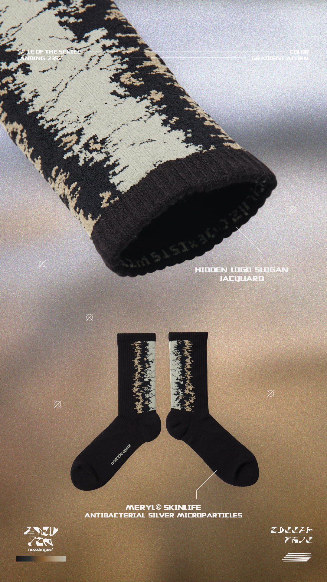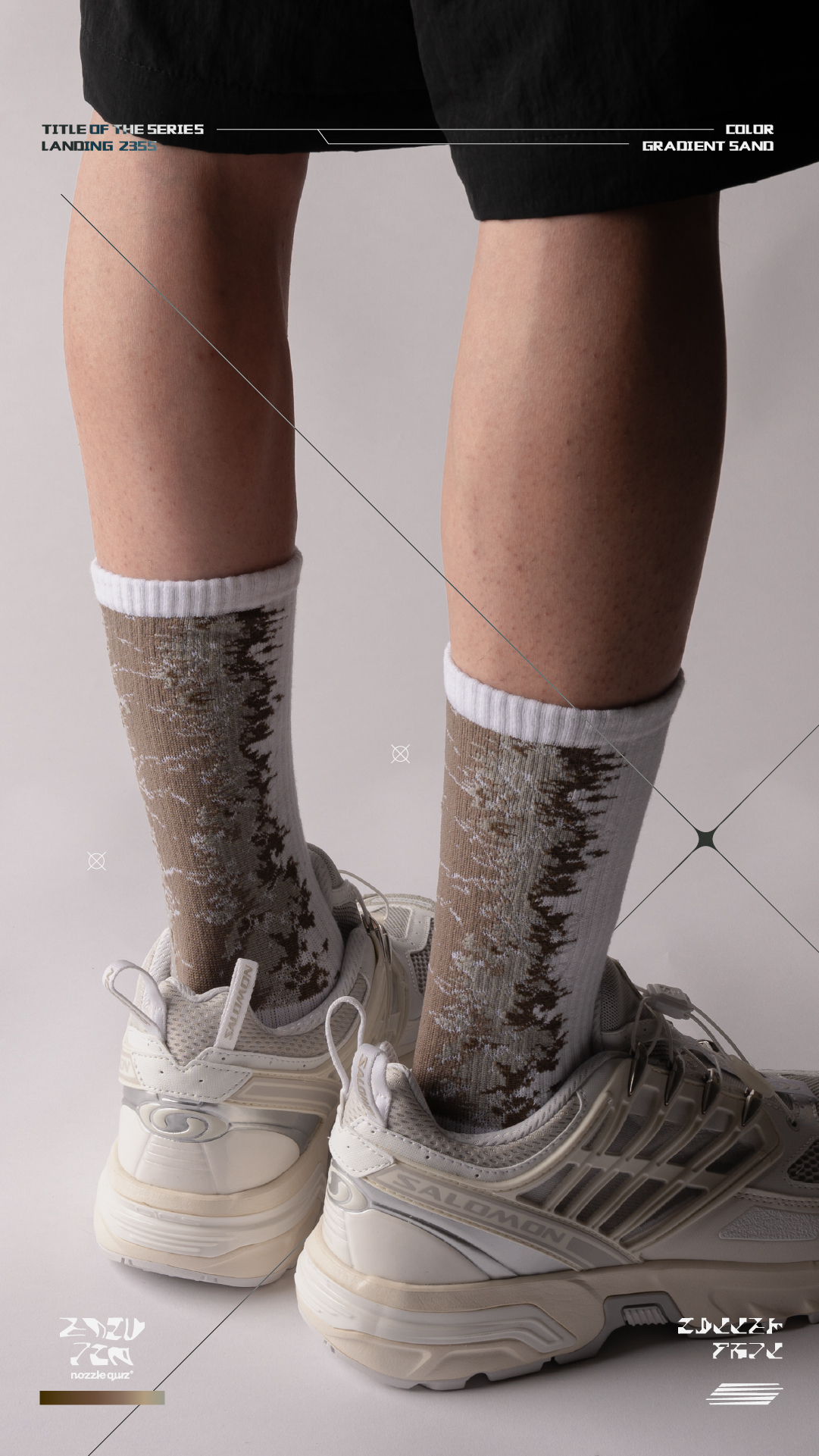 本次帶來三種地貌形象,將麥田、海岸、沙洲融入,以環境型態呼應花紋,使色彩相互交錯,並在襪口內加入隱藏標語。