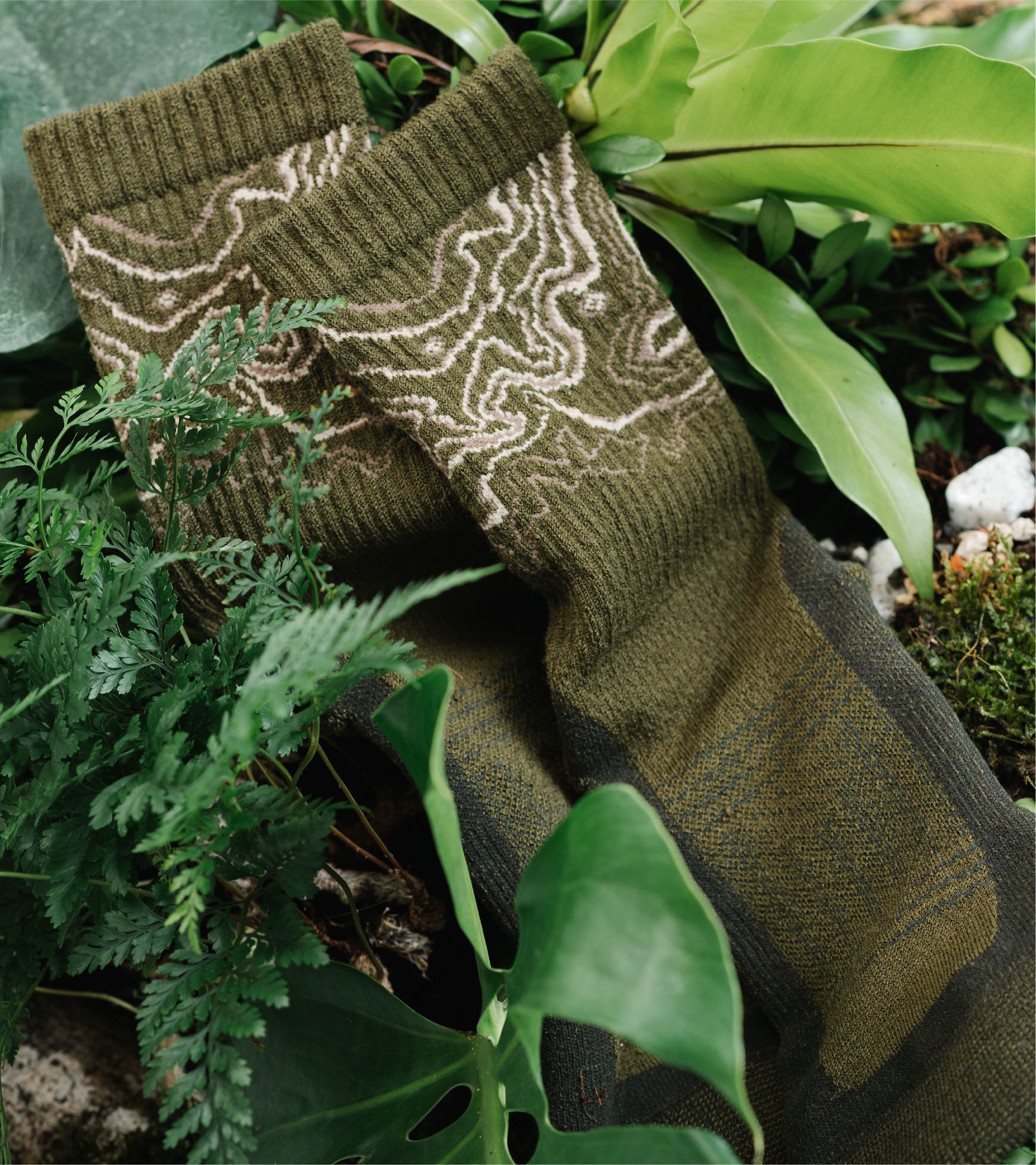 針對有別於歐美國家的潮濕亞熱帶登山環境,主打乾爽與控溫訴求,選用 Merino wool® 頂級美麗諾羊毛紗線,其吸濕透氣特性與溫度調節能力,不論何種環境都能保持雙腳乾爽舒適。搭配品牌一貫使用的 Skinlife®、Lycra® …等機能材料,提升抗菌、抗臭與包覆性,輔以適洽的鬆緊度與共同研發的腳掌關節減壓結構,上乘機能讓每一步攀登都能走得更加輕鬆,釋放單日動輒15公里的登山足部壓力,提供絕佳登山襪履的解決方案。