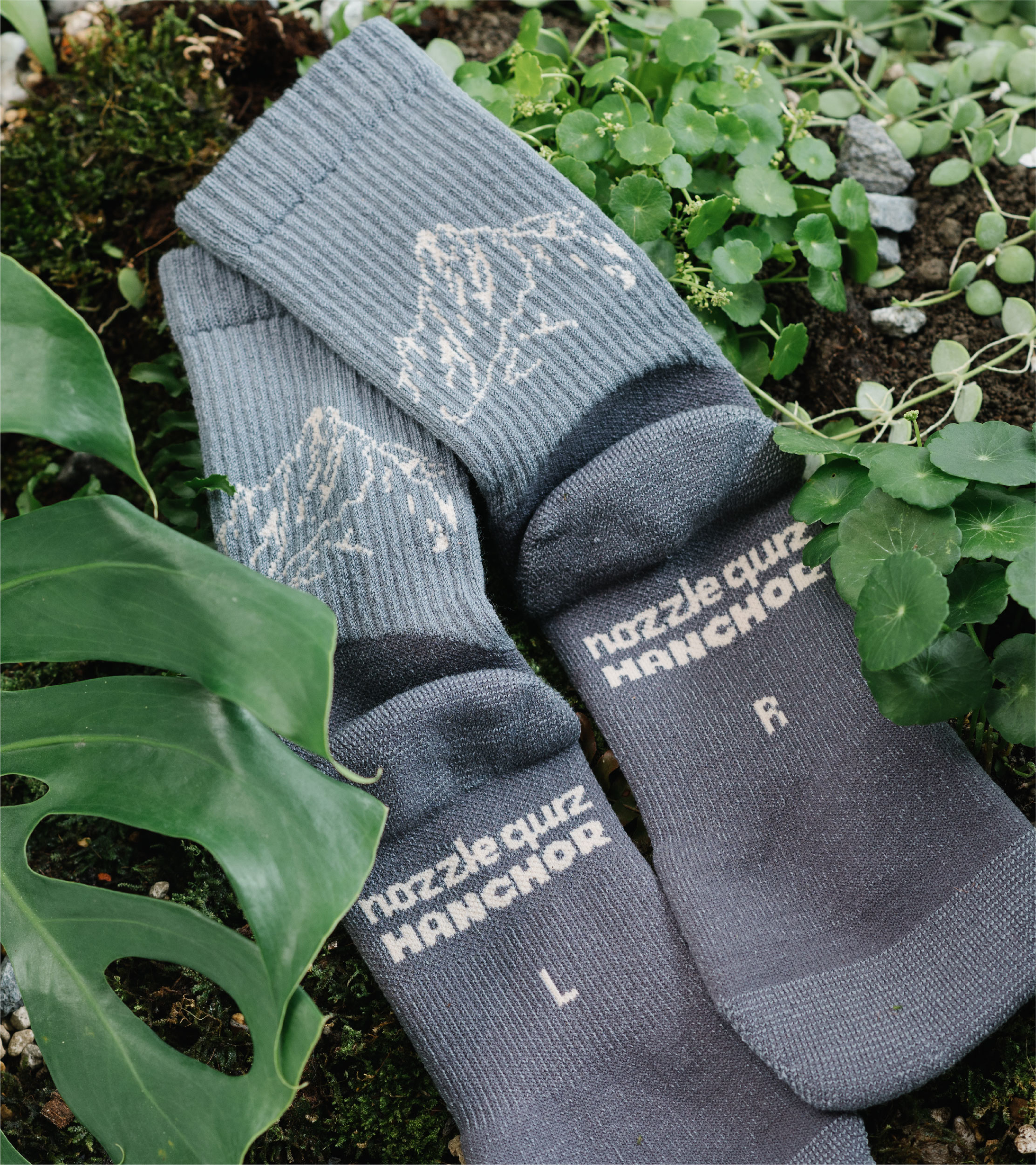 nozzle quiz 與 HANCHOR 多次實地穿戴測試,熟稔登山需求的 HANCHOR 提出各項機能要求,由襪履團隊 nozzel quiz 提出解決方案。