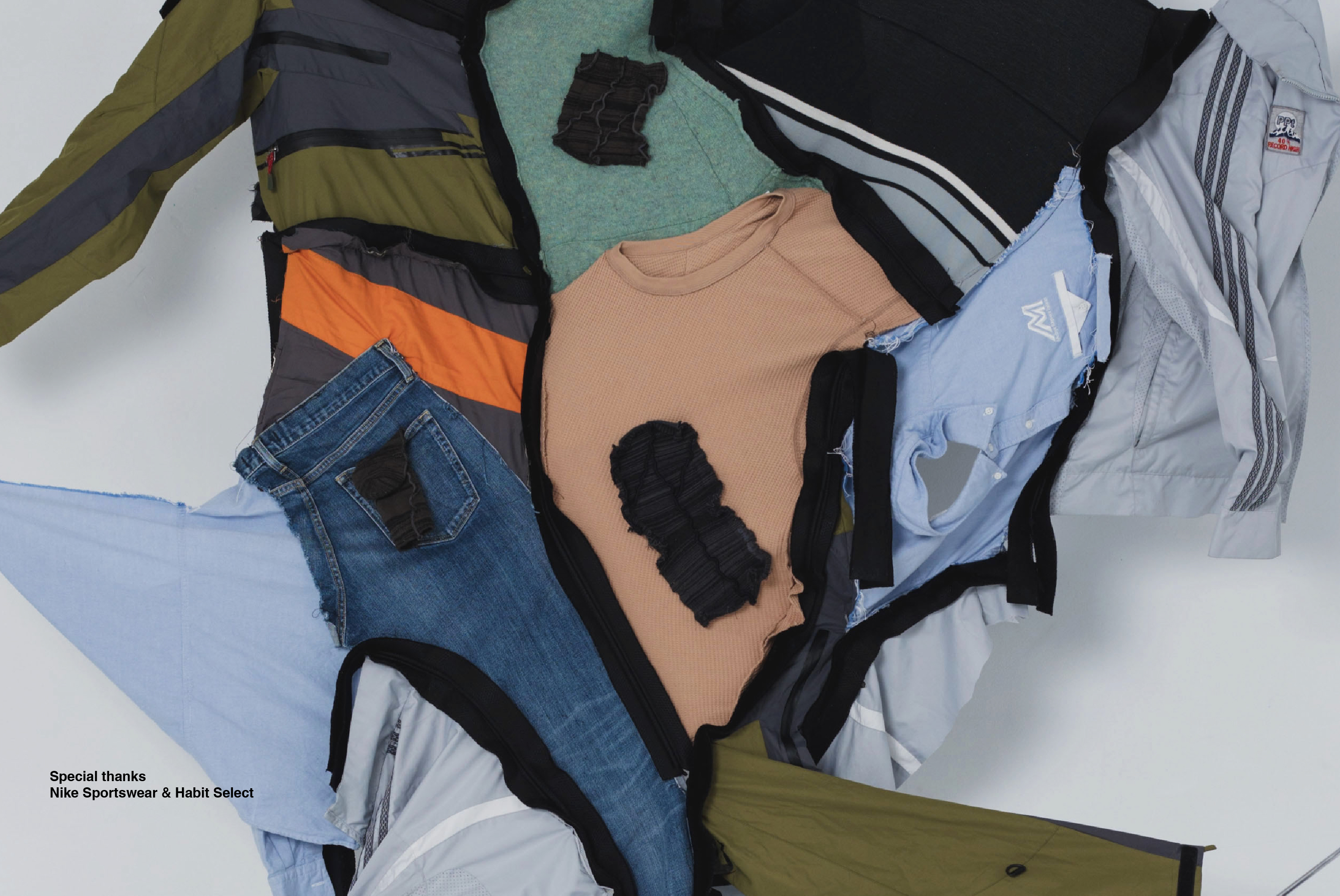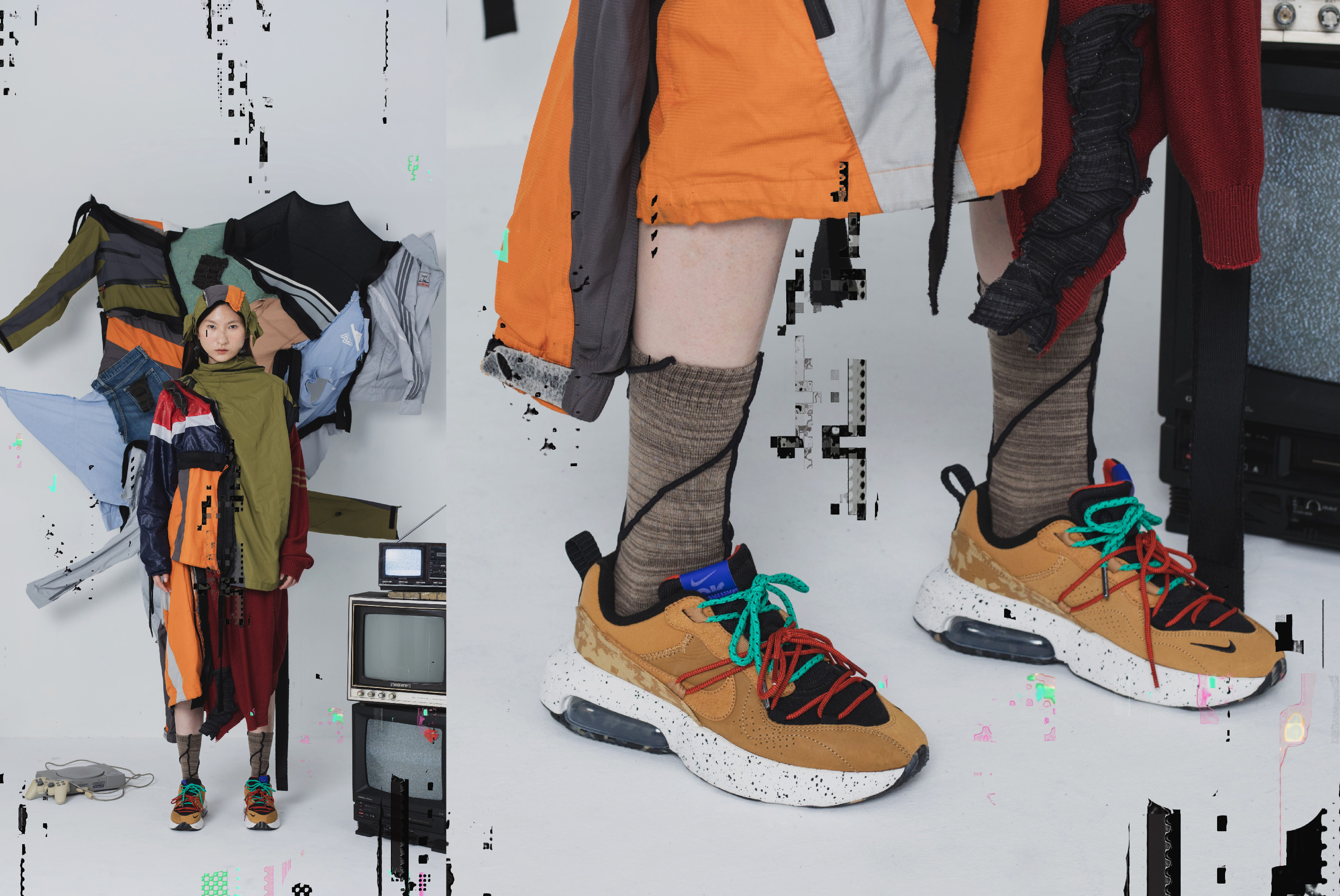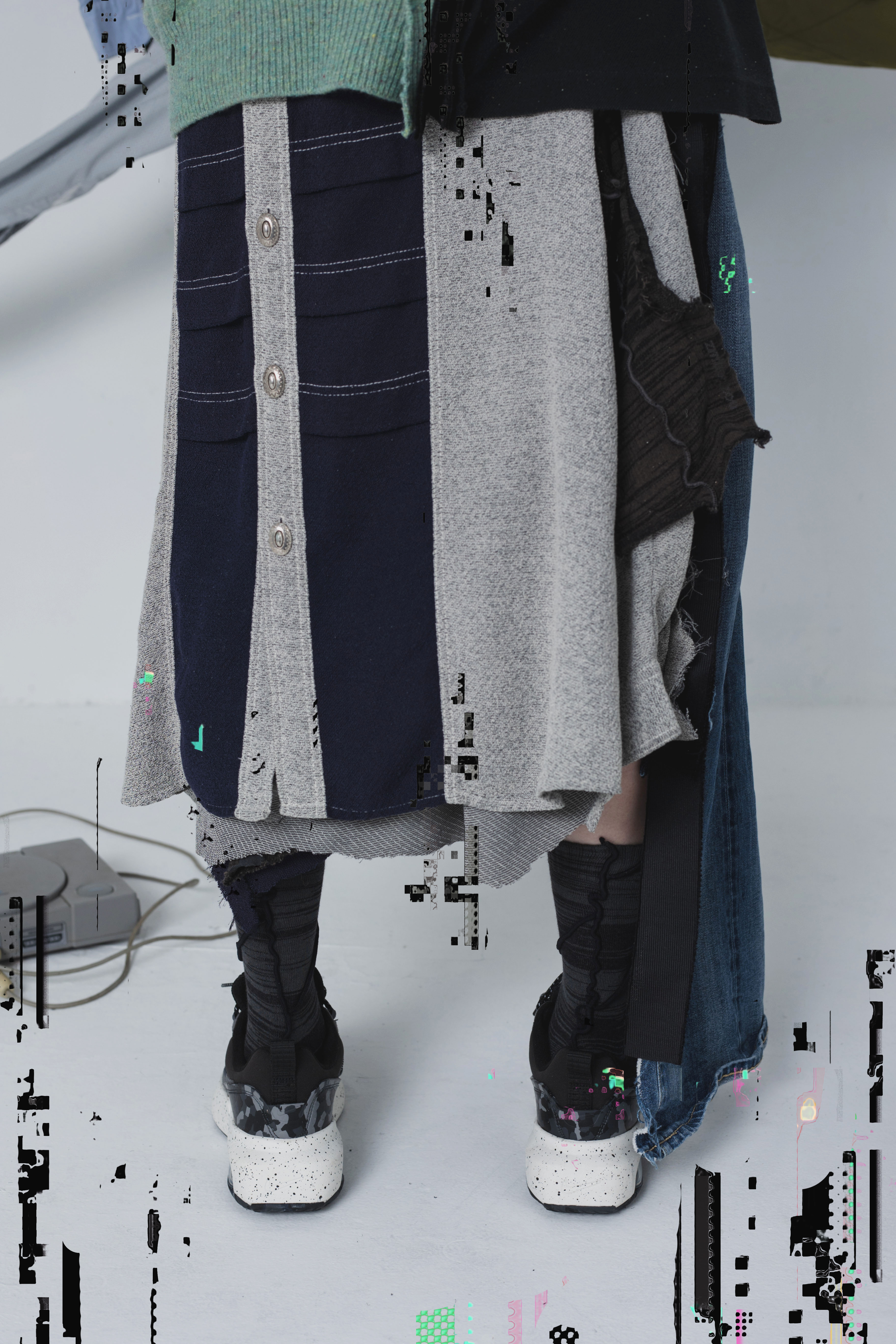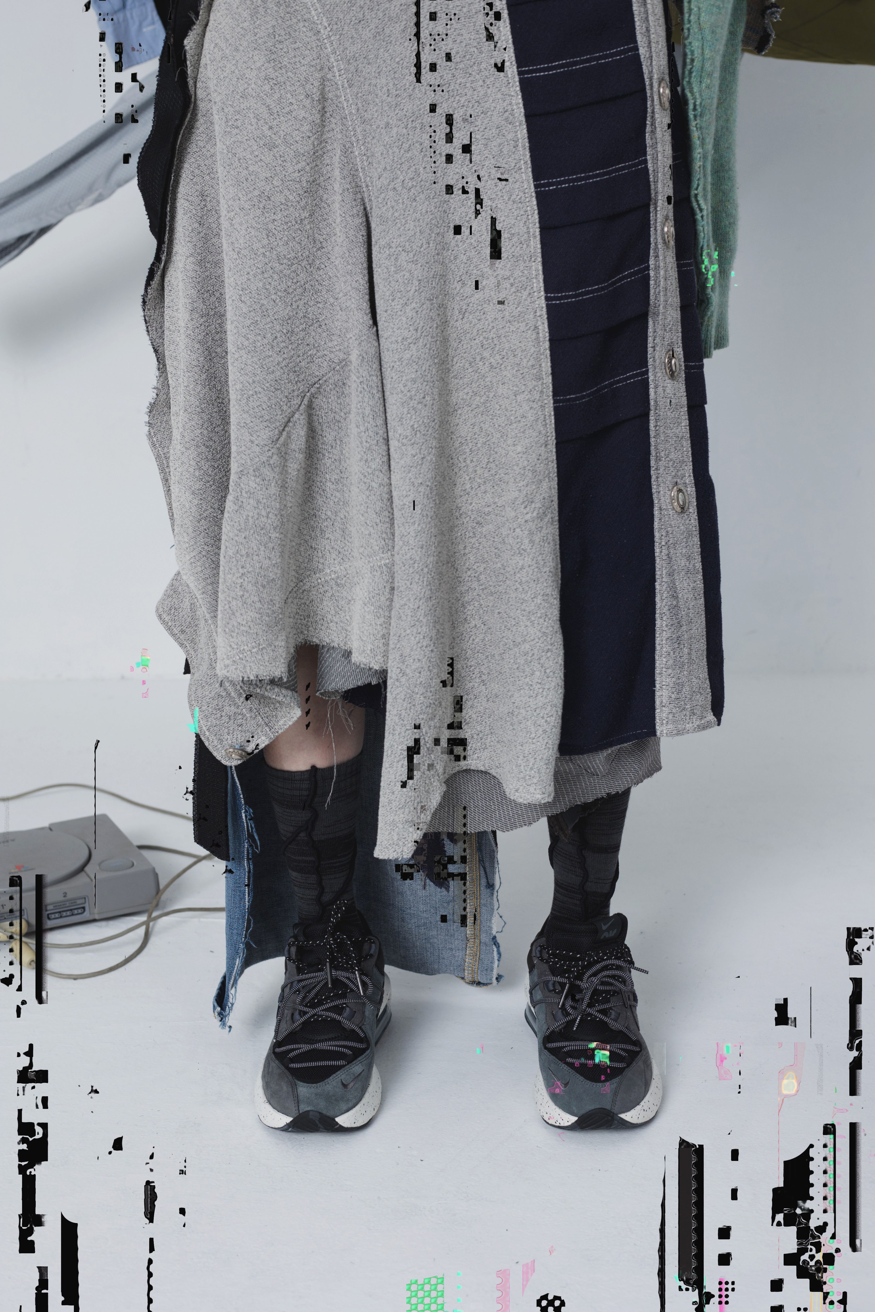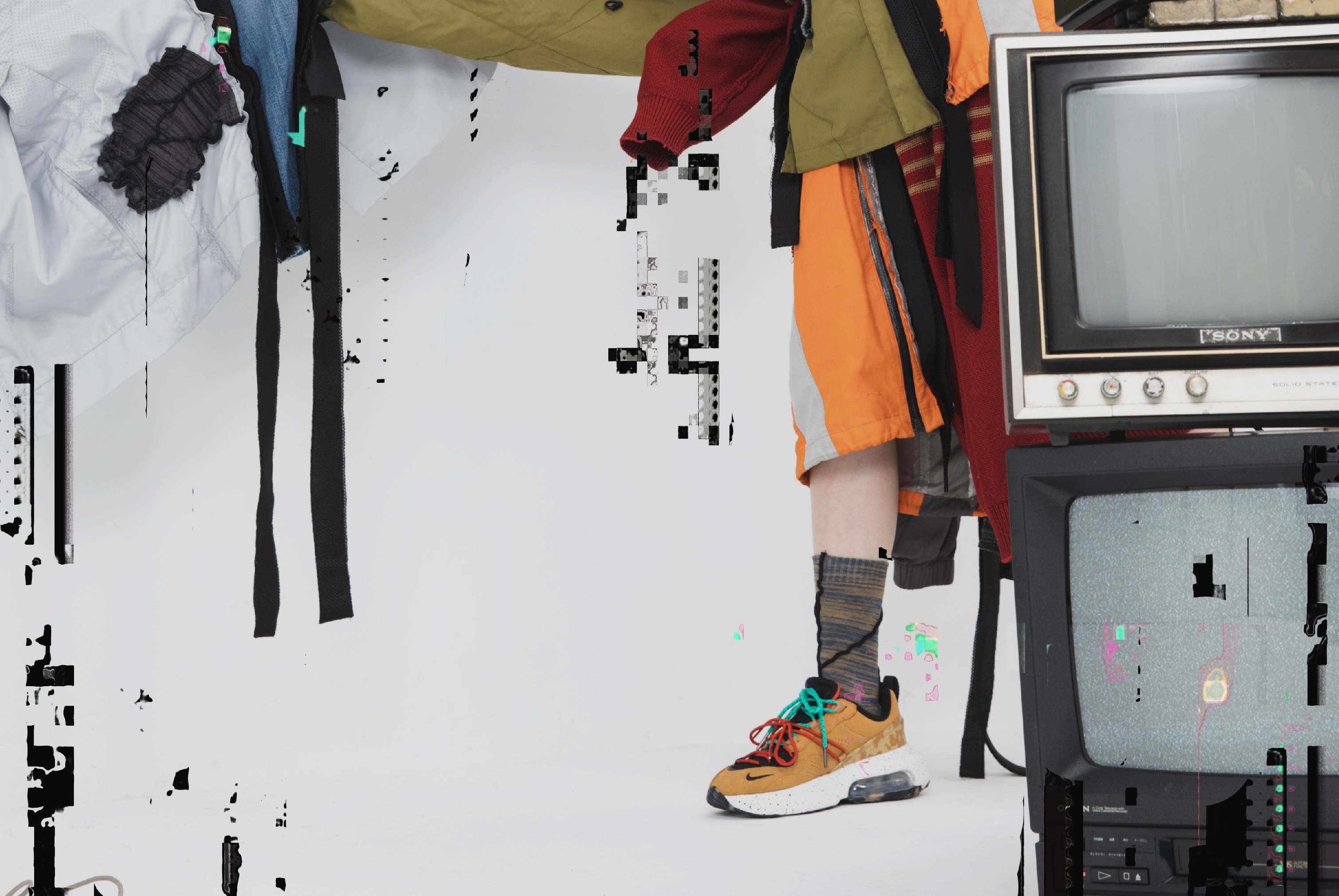 本次 Overlock Stitch 系列形象由 NAS 操刀,靈感擷取70年代映像管電視的 “GLITCH” 毛刺故障畫面,將電路擾動現象融入設計,以再製的解構服裝配上系列襪履,搭配熟稔的類比、電子、堆疊等設計手法將畫面多層疊加,營造充滿電子氛圍的摩登現代感形象。