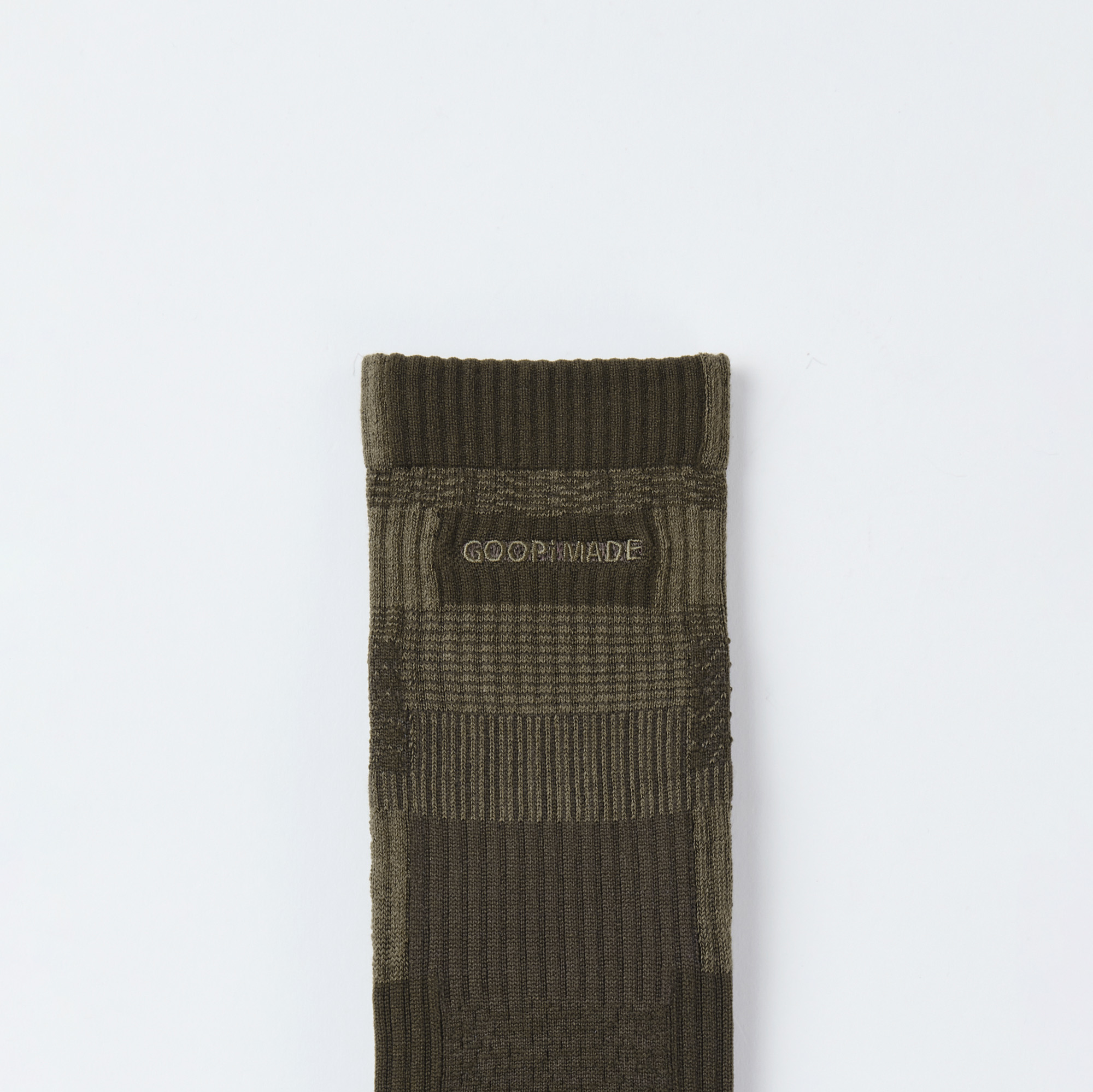 此款襪履沿用「Utility Socks」機能性襪款的技術,以最高規格的前提下,加強耐用性及舒適度,不遜於任何一款 nozzle quiz 襪款,甚至以更複雜的工藝技術融入創作。